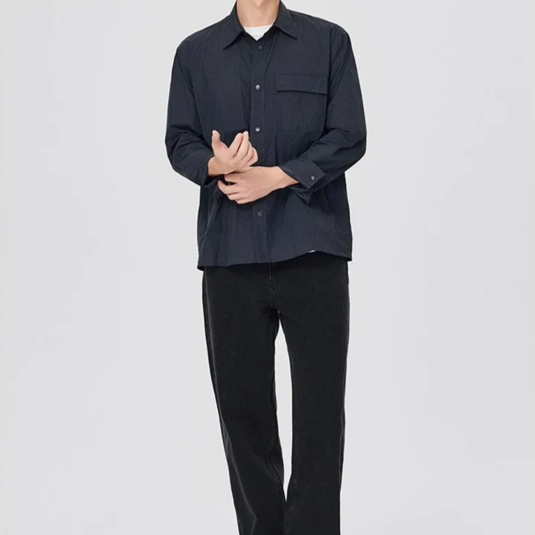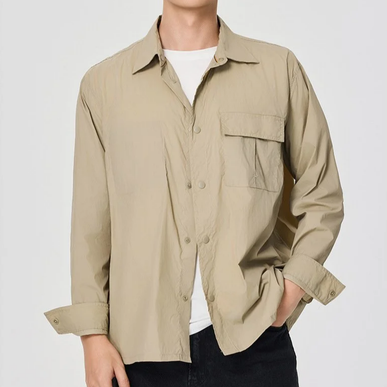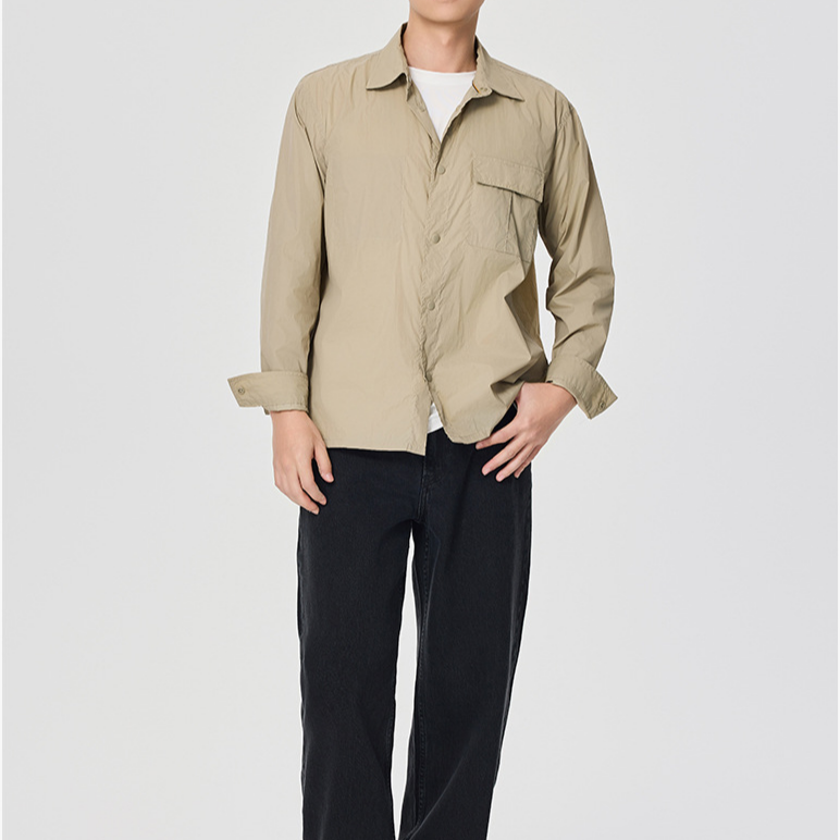 男士寬鬆長袖休閒襯衫夾克韓版純色工裝外套