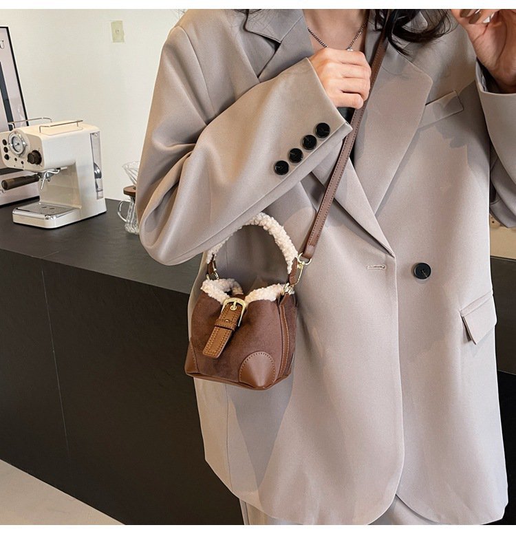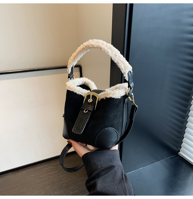 韓版時尚迷你磨砂拼色百搭羊羔絨兒童水桶包